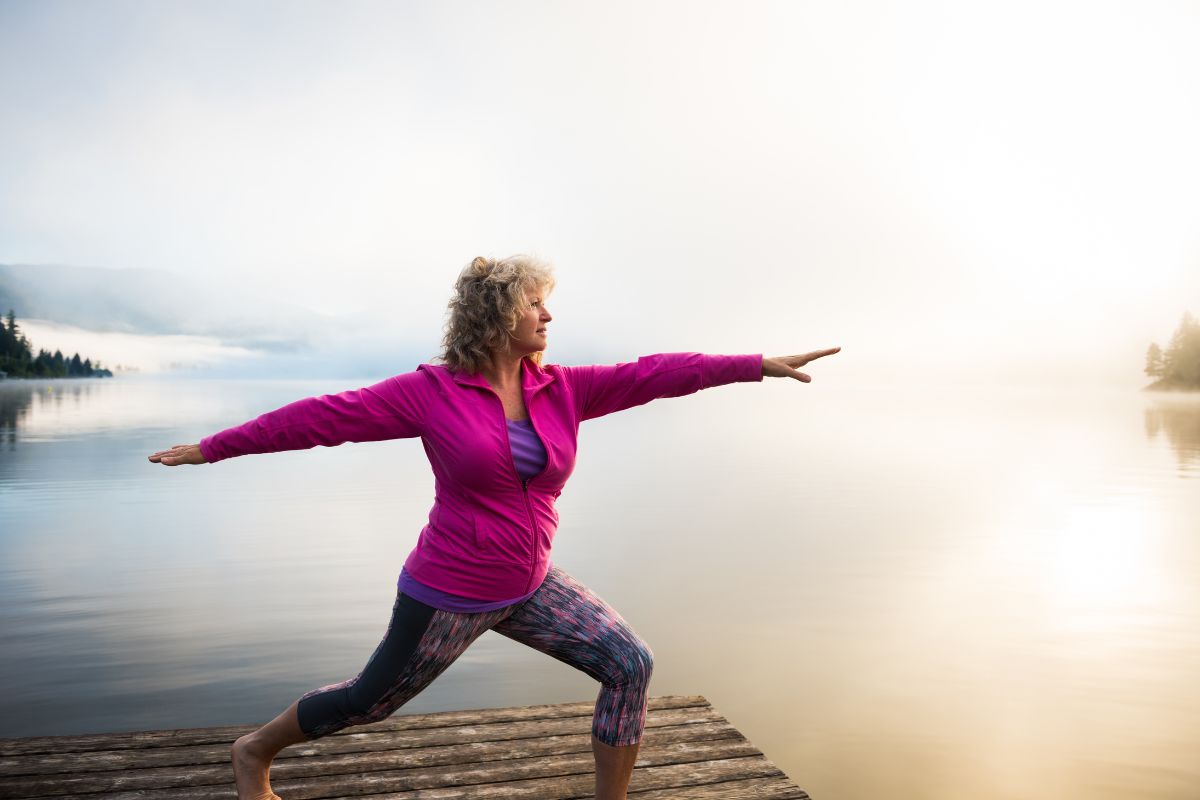Ausatmen: Entspanne in dieser Haltung. SpĂŒre das Loslassen â als wĂŒrdest du den Pfeil fortschicken.